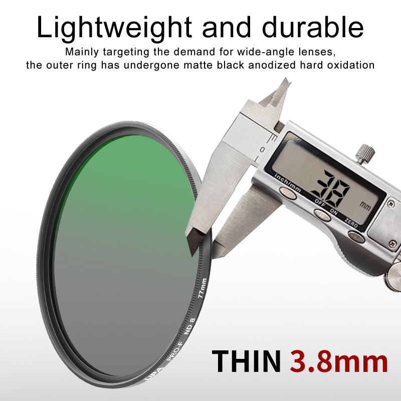 - Thin Filter Frame: Designed with a slim profile to prevent vignetting on wide-angle lenses.